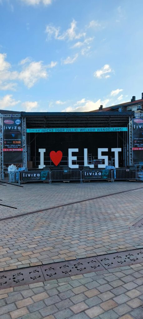 Elst is een feest! Wat een vrolijkheid en bedrijvigheid op de vroege ochtend. Wij staan op voor onszelf, maar de inwoners van de dorpen langs de kant zetten hun wekker om de wandelaars aan te moedigen. Respect.