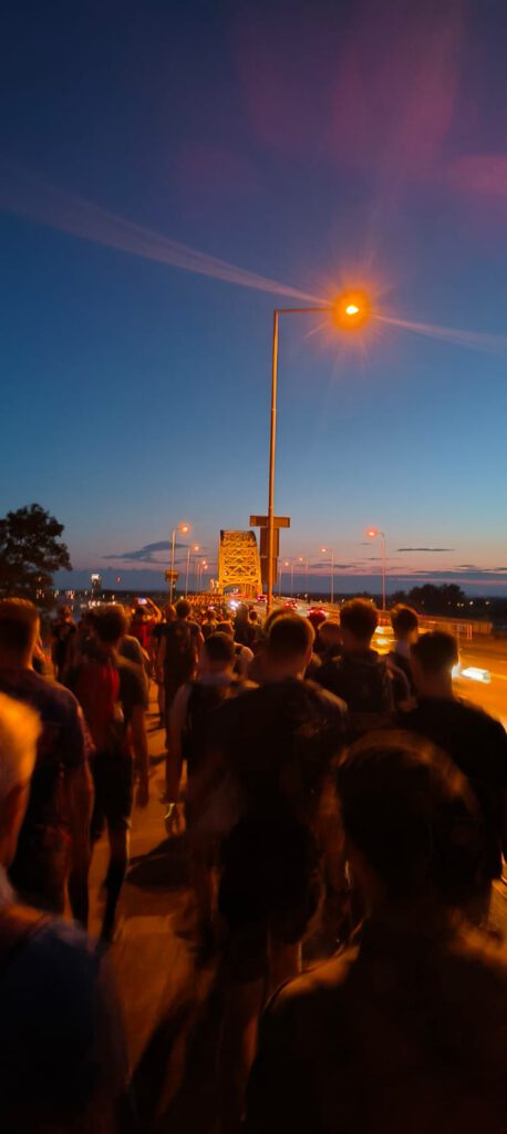 Vroeg in de ochtend staat de wekker, om 02:45. Ik heb geen goede nacht gehad. De rust heb ik gelukkig wel kunnen pakken, maar slaap amper. We schieten in onze kleren en eten gauw wat, voordat we in de auto stappen. Achterop de auto staan twee fietsen. We zetten de auto in een buitenwijk van Nijmegen en fietsen in 5 minuten naar de Wedren, de startlocatie. We staan er precies om 04:00 bij het aftelmoment. Een klein kwartier later worden wij gescand door de startscanner en kunnen we starten. In een drukke meute lopen we Nijmegen uit in het beginnende ochtendgloren. Eerst de iconische Waalbrug. Daarna slaan we af op de dijk richting Oosterhout. Inmiddels is het hier al beginnend licht. De muziek staat ook op deze vroege vroege ochtend al hard aan en het feest is er zeker al. We passeren Oosterhout rond 06:00.