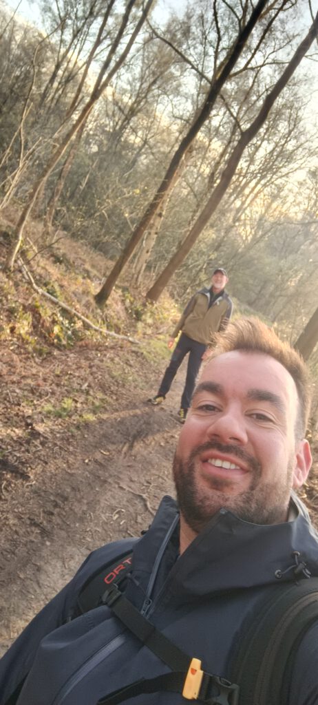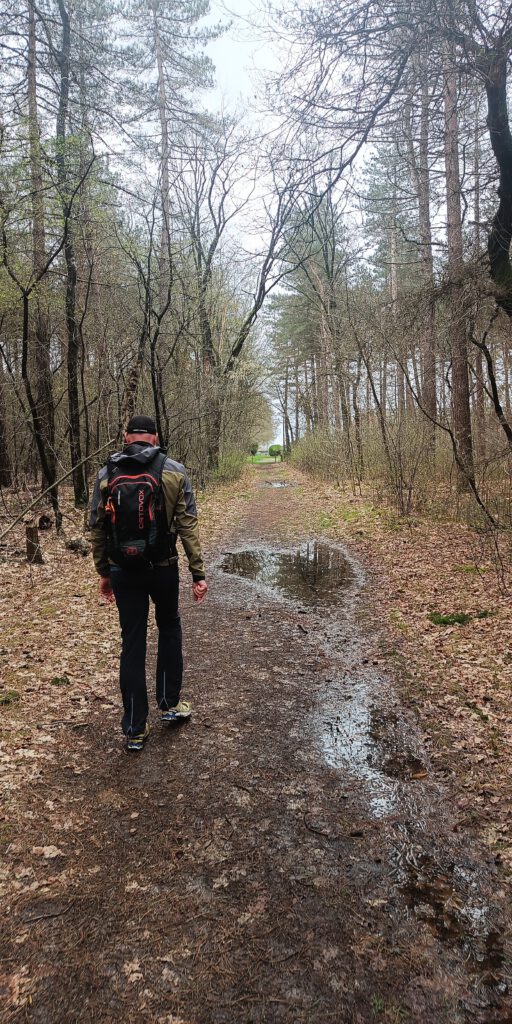 Na de break hoeven we minder dan 15 kilometer te wandelen. Op dit stuk van de wandeling breekt eindelijk de zon door, ook omdat deze onder de wolken terecht is gekomen. Slingerend door de bossen lopen we uiteindelijk een meer open landschap in en zien we de kerktoren van Rijsbergen. Het duurt voor mijn gevoel een eeuwigheid voordat deze wat dichterbij komt, want we blijven zigzaggend die kant op gaan. Het zijn dus uiteindelijk nog heel wat kilometers voordat we écht in de buurt komen van Rijsbergen.