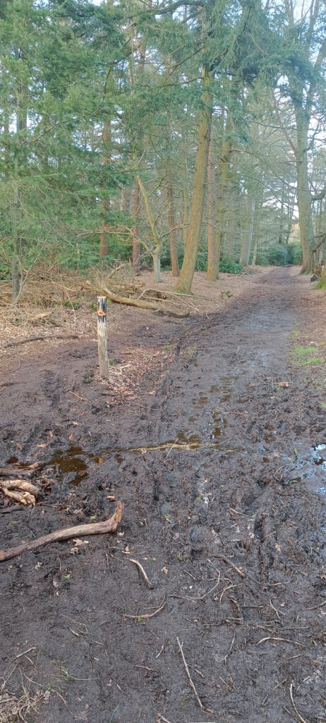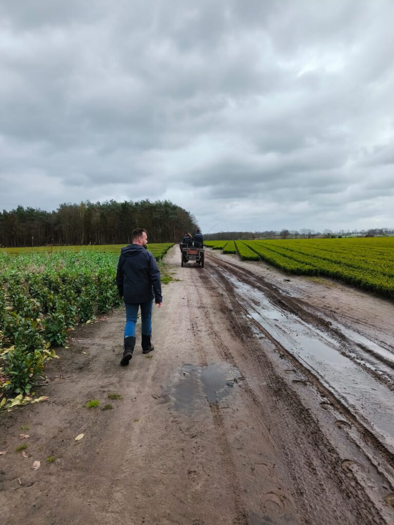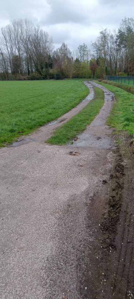 Vlakvoor we het dorp in lopen, worden we op een onverharde weg getrakteerd op nóg meer blubber. Dit is ietsje dieper dan ik inschatte dus ik zag tot vlakbij mijn enkels weg. Sorry Ron, dat wordt weer een schoonmaakklusje voor jou om de schoenen weer schoon te krijgen.