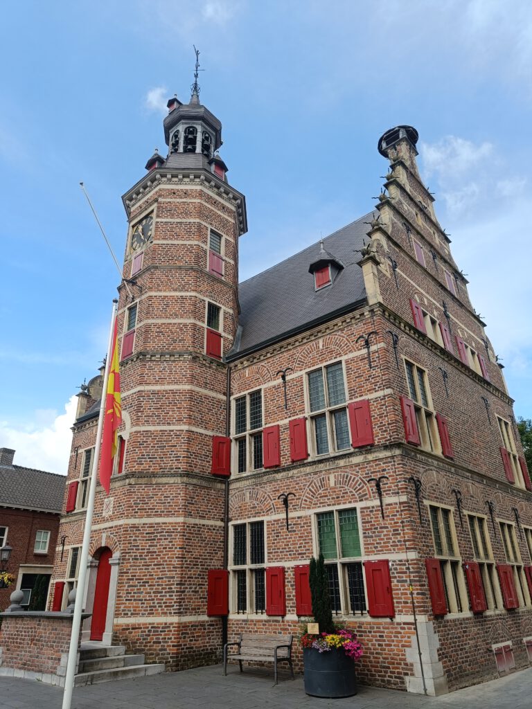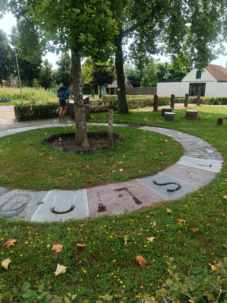 Zoals gezegd lopen we nu niet meer een bewegwijzerde route, blijkbaar is het Pieterpad omgelegd en zijn ze op de websites de GPX-bestanden vergeten te updaten, maar tóch lopen we Gennep in. Gennep is het eerste dorp dat we tegenkomen dat óók een rol gaat spelen in onze 4Daagse. We zullen met de 4Daagse door Gennep lopen op donderdag. Later vandaag zullen we meerdere 4Daagse-dorpen tegen gaan komen, zoals Milsbeek en Groesbeek, ook allemaal dorpen die we op ‘Groene donderdag’ zullen aandoen. Via het oude dorpscentrum van Gennep lopen we het dorp weer uit en we volgen daarbij de rivieren Niers en Maas. Hier komen we het Pieterpad weer tegen. Nadat we de Niers oversteken, nemen we van beide rivieren afscheid en we lopen via Milsbeek naar de Duitse grens. In Milsbeek kunnen we precies zien waar de 4Daagse-route zal gaan lopen, want we kunnen de vlaggenmasthouders al zien zitten in de lantaarnpalen.