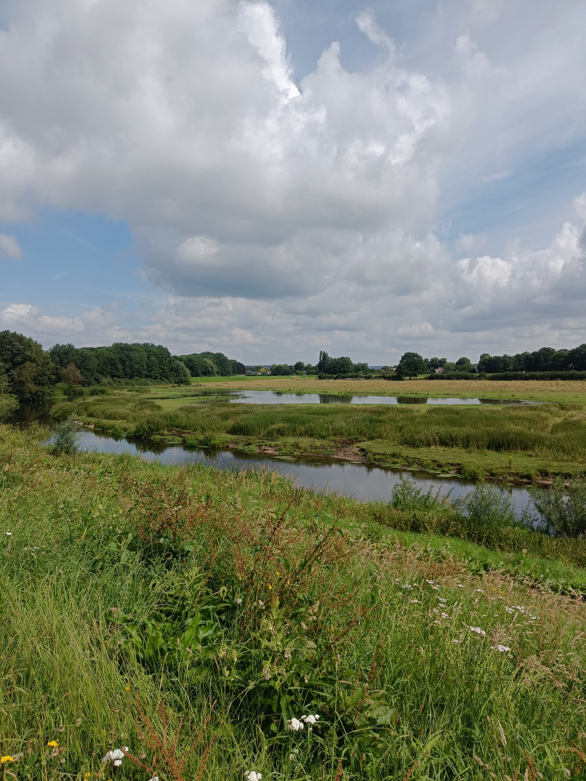 Het Grote Rivierenpad volgt de rand van de stuwwal ten oosten van Nijmegen. Je hebt dus mooi uitzicht over de lager gelegen gebieden, zoals de Ooijpolder waar de Waal langs stroomt.