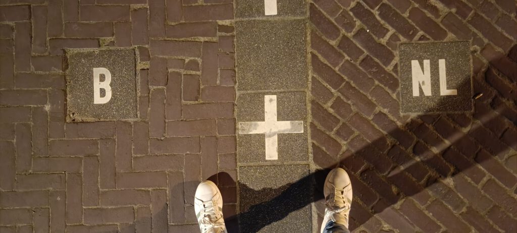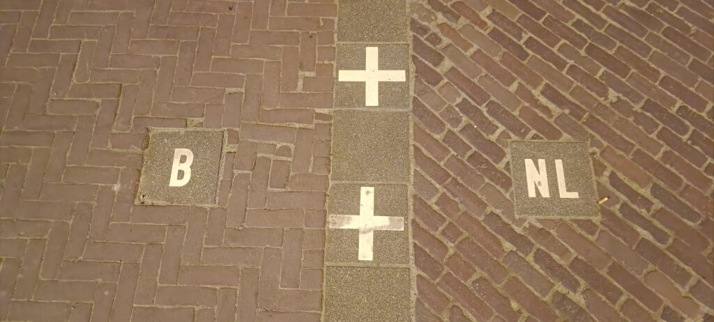 In de straatinrichting is dit rare samenspel te zien in Belgische en Nederlandse straatnaamborden en verkeersborden. Op de wegen is de grens vaak aangegeven met een B of NL met kruisjes. En zo is het Belgische plaveisel met gaten typisch Belgisch en het daarop volgende Nederlandse wegdek strak en netjes aangelegd. Werkelijk bizar. Thomas met zijn stedenbouwkundige achtergrond valt dan ook van verbazing in verbazing.