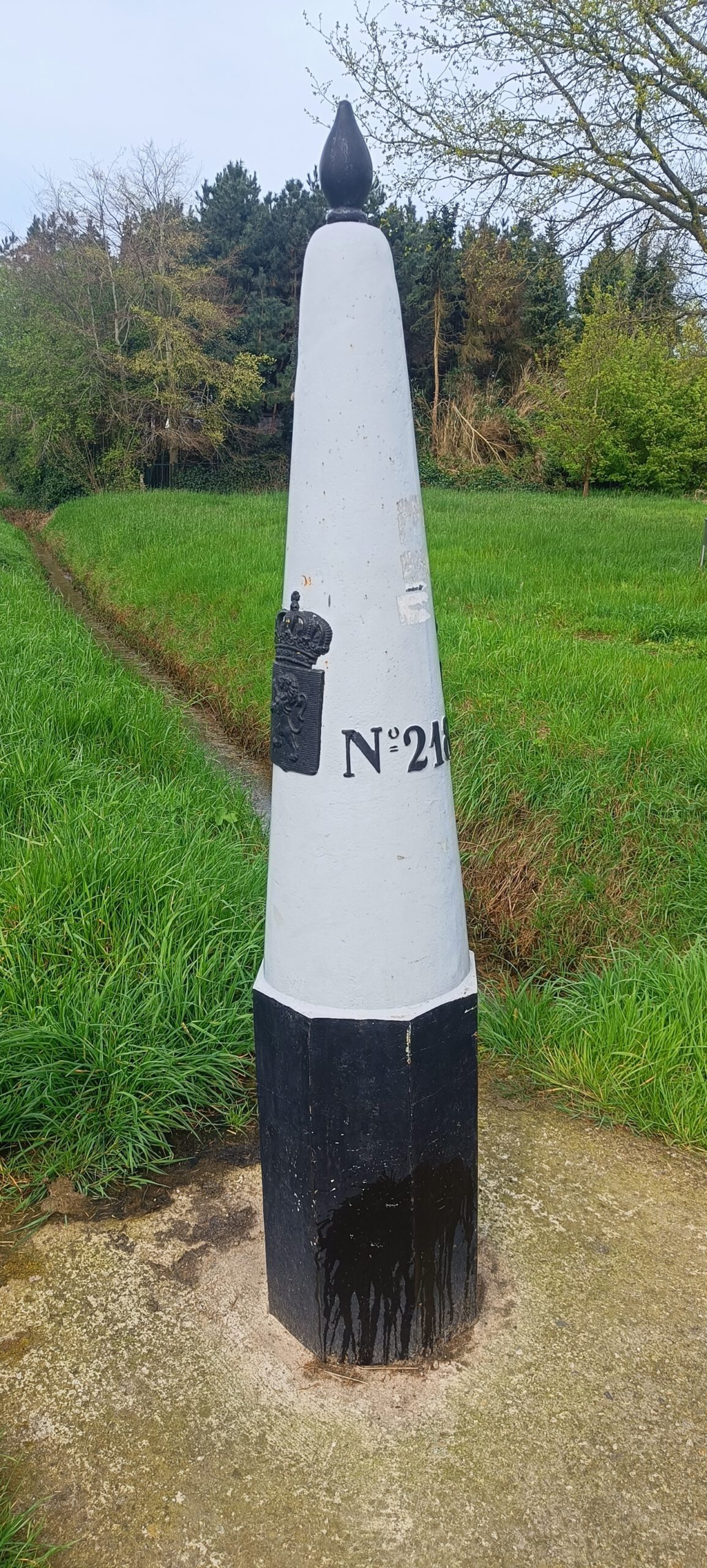 Zoals je inmiddels niet zult zijn ontgaan, gaan onze wandelingen op dit moment over het grensgebied tussen België en Nederland. Een soms merkwaardig lijnenspel van door de geschiedenis bepaalde grenscontouren. Dat dit soms tot idiote situaties kan leiden wordt ons maar al te duidelijk tijdens onze wandeling.