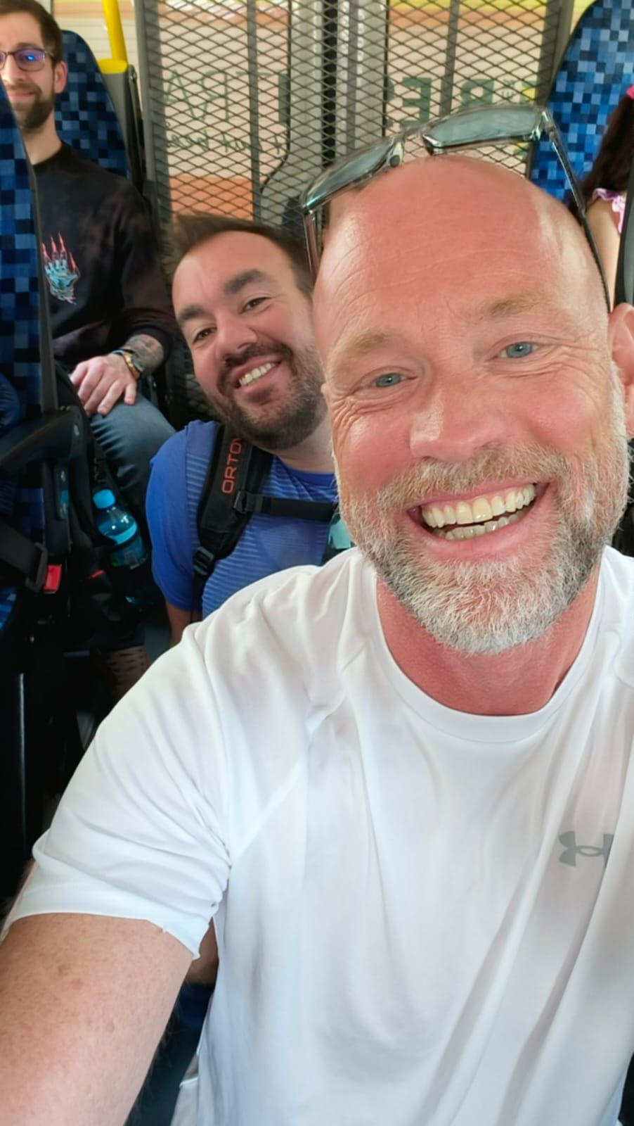 Ron en ik pakken de trein naar Roermond en daar pakken we een klein busje naar Sint Odiliënberg. Het is een 8-persoonsbusje, waar wij persoon 10 en 11 in zijn. Dus we mogen al van geluk spreken dat we mee mochten. Tussen de stoelen in zitten we in het busje op de grond. Niet helemaal veilig, maar we komen er gelukkig wel. Onderweg giet een kind nog het laatste restje cola uit zijn blikje over me leeg, dus dit keer gebruik ik voor de verandering het vochtig toiletpapier eens voor iets anders. Bij de PLUS in Sint Odiliënberg koop ik nog wat proviand voor onderweg en we kunnen vertrekken. Het weer is heerlijk! Blauwe lucht en prima temperatuur! We kunnen echt van geluk spreken, want dit weerbeeld is niet overal in Nederland hetzelfde.
